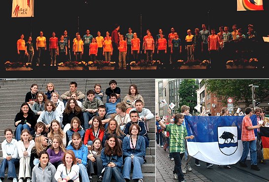 Olympisches Silber für Eberbacher Jugendchor Oben der Auftritt, unten die Eberbacher in Bremen. (Fotos:privat)(cr) Alle zwei Jahre findet die "Chorolympiade", ein internationaler Chor-Wettbewerb statt. Im Jahr 2000 war er in Linz, im Jahr 2002 in Busan (Südkorea) und in diesem Jahr in Bremen.