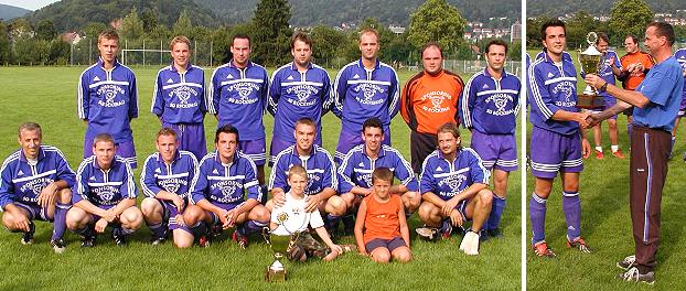 SGR holt sich mit Losglück und Endspielsieg den Neckartal- Cup Die siegreiche Mannschaft der SG Rockenau sowie VfB- Vorsitzender Joachim Scheible (rechts) bei der Pokalübergabe an Carsten Lehfeld (Fotos:Claussen)(jc) Gestern und heute wurde im Stadion in der Au der 12. Neckartal- Cup des VfB Eberbach ausgespielt. 12 Mannschaften aus fünf verschiedenen Fußballkreisen, die im regulären Spielbetrieb deshalb normalerweise nicht aufeinander treffen, waren angetreten um den begehrten Wanderpokal in den Händen zu halten.
