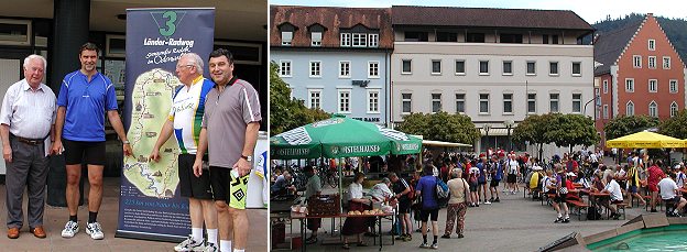 Grenzenlose Radtour am Etappenziel Eberbach angekommen Herrmann Bussemer mit den Landräten Detlef Piepenburg, Horst Schnur und Roland Schwing (Fotos:Claussen)
