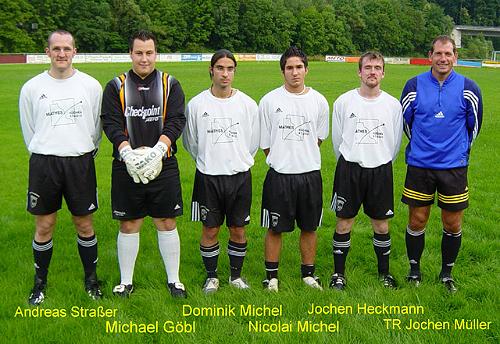 Neuzugänge mit Bild: Nicolai u. Dominik Michel (SV bzw. VfB Eberbach), Andreas Straßer, Jochen Heckmann (FC Finkenbach), Michael Göbl (TW, FC 07 Bensheim)