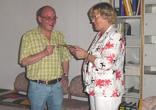 Elisabeth Baumbusch überreichte im Namen des Kollegiums einen Büchergutschein und einen Blumenstrauß (unser Bild), um sich für die geleistete Arbeit, die häufig über den Rahmen des Pflichtbereichs hinausging, zu bedanken und wünschte Müller für die Zukunft alles Gute.