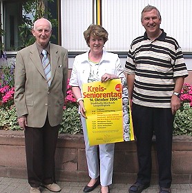 Älterwerden in einer modernen Gesellschaft Werben für den Kreis-Seniorentag am 14.Oktober in Eberbach: Helmut Ehret, Anita Mülker und Rudi Kößler (v.l.). (Foto:C.Richter)(cr) Eine Veranstaltung speziell für Senioren ab 60 Jahren wird am 14. Oktober 2004 in der Stadthalle in Eberbach stattfinden. Organisiert wird dieses Treffen von der Eberbacher Seniorenarbeit, das heißt von Eberbacher Institutionen, die für Senioren Ansprechpartner in den verschiedensten Bereichen sind. Mitveranstalter ist auch der Kreisseniorenrat im Rhein-Neckar-Kreis. Anita Mülker, 1. Vorsitzende des Kreisseniorenrats, Rudi Kößler, 2. Vorsitzender und Sprecher für die Eberbacher Seniorenarbeit sowie Helmut Ehret von der Bürgerstiftung Eberbach, die diese Veranstaltung unterstützt, stellten gestern das Programm der Öffentlichkeit vor.
