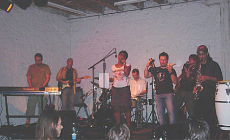 Explosiver Funk und Soul mit Us2U "Us2U" in Akion: Im Vordergrund Menoosha Susungi und Christian Stockert. (Foto:Koss)(ak) Zu einem weiteren musikalischen Leckerbissen lud das Kulturlabor gestern Abend in die Galerie ARTgerecht ein. "Us2U" zitierten mit ihren Songs Größen wie James Brown, Johnny Guitar Watson, Prince, Alicia Keys und viele andere. Mit schier unglaublicher Energie fegte Frontsänger Christian Stockert über die Bühne, mit seiner Powerstimme und der von Soulsängerin Menoosha Susungi elektrisierte "Us2U" das Publikum. Für einen Song im Duett mit Menoosha Susungi kam Letizia Allegra auf die Bühne, zu Gast war auch Saxophonist Ralph Delgado, der mit seinem Instrument die Luft vibrieren ließ. Den mitreißenden Rhythmus verliehen den Songs Johannes Solf an der Gitarre, Carsten Reiter am Bass, Dario Allegra am Keyboard und Michael Reiter an den Drums. Das Publikum aus rund 170 Leuten stand schon bald nicht mehr still, es wurde mitgerockt und mitgesungen - ein Riesenspaß für alle.