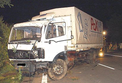 52-jähriger LKW-Fahrer tödlich verletzt Der LKW nach der Bergung. (Foto:Polizei)(cr) (pol) Tödlich verletzt wurde ein 52-jähriger Lastwagenfahrer bei einem Verkehrsunfall, der sich gestern gegen 21.40 Uhr auf der B 37 bei Zwingenberg in Höhe der Einfahrt zur Neckarfähre ereignete.