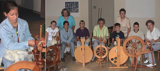 Erika Backfisch, Christa Haas, Maria Riedl und Elisabeth Schwaab stellten in der Schule Spinnräder zur Verfügung, an denen die Kinder richtiges Spinnen erlernten. Zuvor aber erfuhren die Kids alles Wichtige über das Spinnrad selbst, über die Technik des Spinnens und über das Material, das versponnen wird.