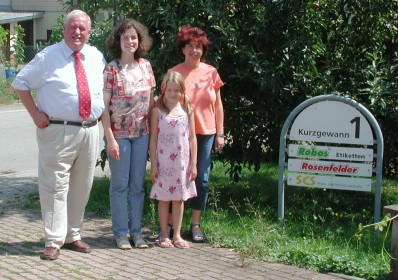 (ub) (gvs) Zu weiteren Vor-Ort-Gesprächen besuchte Bürgermeister Roland Schilling die Firma Rosenfelder GmbH & Co.KG im Schwanheimer Gewerbegebiet "Kurzgewann". Die Geschäftsführerinnen Sabine Rosenfelder und Carolina Rosenfelder-Wagner nahmen diesen Besuch zum Anlass, um den mittelständischen Betrieb mit derzeit 30 Mitarbeiterinnen und Mitarbeiten sowie die Produktionspalette in der gesamten Breite vorzustellen. Gegründet wurde die Firma 1965 in Schwanheim und konnte seitdem trotz mehrerer und umfangreicher Erweiterungen dem Standort treu bleiben. Viele Mitarbeiterinnen und Mitarbeiter gehören schon lange Jahre zum Stammpersonal. So wurde Ende Juli 2004 Sabine Schirmer aus Schwanheim nach 22jähriger Betriebszugehörigkeit in den wohlverdienten Ruhestand verabschiedet. Im Jahr 2005 steht das 40jährige Betriebsjubiläum an.