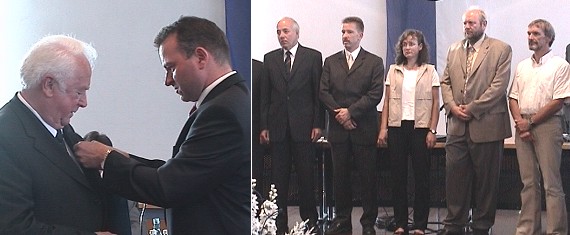 Zunächst wurden drei ausscheidende Ratsmitglieder verabschiedet. Hans Leistner, auch als Rockenauer Ortsvorsteher im Ehrenamt, war am 30. September 2002 für den verstorbenen Stadtrat Günter Schupp ins Stadtparlament nachgerückt und verfehlte diesmal knapp die Wiederwahl. Vanessa Frey, bis dato jüngste Stadträtin, war fünf Jahre für die Alternative Grüne Liste (AGL) dabei und hatte in diesem Jahr nicht wieder kandidiert. Hermann Bussemer schließlich war schon seit 20 Jahren Gemeinderatsmitglied für die CDU und seit 1999 erster Bürgermeister-Stellvertreter. Der Träger des Bundesverdienstkreuzes erhielt heute von Bürgermeister Bernhard Martin für seine besonderen Verdienste die Ehrennadel des Gemeindetags Baden-Württemberg.