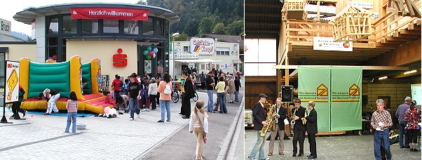 Sparkasse, Getränke Knopf und Müller Holzbau öffneten Türen (Fotos:Claussen)(jc) Anlässlich der Eröffnung der neuen Geschäftsstelle der Sparkasse Neckartal- Odenwald in Eberbach-Nord (wir berichteten) war heute die Bevölkerung zum "Tag der offenen Tür eingeladen". Nicht nur die Sparkasse ließ die Besucher dabei hinter die Kulissen blicken, sondern auch die Nachbarn Getränke Knopf und Holzbau Müller beteiligten sich mit verschiedenen Aktionen. Die Bewirtung mit Getränkestand und Festzelt übernahm der Evangelische Kindergarten Arche Noah.