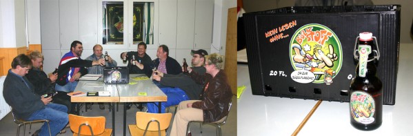 Bölkstoff-Party zur Allemühler Kerwe Der Kerweausschuss bei der Qualitätsprüfung des begehrten Bölkstoffes. (Fotos:Böhm) (ub) Auf Hochtouren laufen die Vorbereitungen zur Allemühler Kerwe. Der Kerweausschuss der Allemühler Feuerwehr, der in diesem Jahr das im Wechsel mit der Musikkapelle "Kleiner Odenwald" und dem Gemischten Chor "Frohsinn" ausgerichtete Kirchweihfest am ersten Oktoberwochenende vorbereitet, stellte das viertägige Programm vor. Am Freitag, den 1.10., eröffnet die 3. Bölkstoffparty die Kerwe. Dieses dem Lieblingsgetränk einer plattdeutsch sprechenden Comic-Kultfigur gewidmete Event im Saal der Alten Schule fand vor sechs Jahren zum ersten Mal statt und kann nur alle drei Jahre besucht werden. Aufgund der Erfahrungen der beiden bisherigen Veranstaltungen hat man ausreichende Mengen des begehrten Nasses geordert, damit auch spätere Gäste noch in den Genuss kommen. Der Kerweausschuss prüfte bei seiner Sitzung sogleich den neuen Jahrgang und bürgt für dessen Qualität. Am Samstag, den 2.10., ist Kerwetreiben in den Gaststätten angesagt. Am Sonntag, den 3.10., beginnt um 9:30 Uhr der Frühschoppen. Um 14:00 Uhr folgt der Höhepunkt der Kerwe, der Umzug mit Kerwe-Predigt und anschließendem Kerwetanz in der Halle. Wie in den vergangenen Jahren erwarten die Organisatoren eine große Zahl von Motivwagen und Gruppen, die sich teilweise spontan, quasi über Nacht noch zum Umzug anmelden. Den Kerweausklang bildet das Kinderfest unter der Regie von DJ Martina am Montag, den 4.10., um 14:30 Uhr auf dem Dorfplatz.
