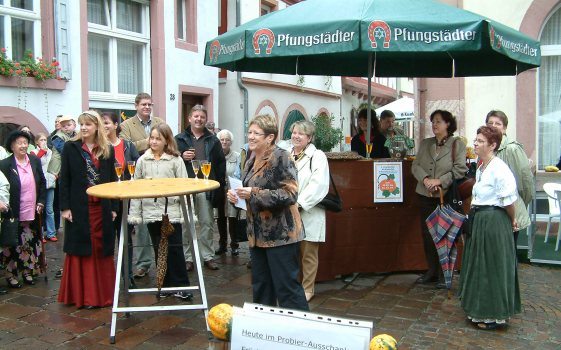 Hirschhorn lockt mit Spezialitäten rund um den Kürbis (Foto:Wörner)(tw) Trotz des unfreundlichen Wetters waren heute Nachmittag zahlreiche Gäste nach Hirschhorn gekommen. Wie auch schon im letzen Jahr luden die Betriebe des Hotel- und Gaststättenverbandes dazu ein, sich mit Kürbisspezialitäten verwöhnen zu lassen. Bis zum 10. Oktober soll sich in Hirschhorn wieder alles rund um den Kürbis drehen. Zur heutigen Eröffnung der 2. Kürbiswochen waren die Geschäfte in der Altstadt geöffnet. Es gab Stände mit Kürbisprodukten in allen Variationen, eine Kinderaktion des Hirschhorner Kindergartens und ein Konzert der Katholischen Kirchenmusik Hirschhorn unter der Leitung von Kerstin Obert.
