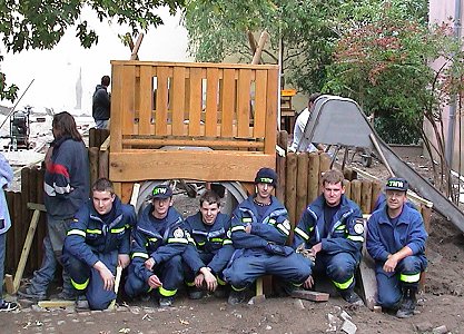 Trotz Erschöpfung in den Endspurt Gestern baute eine THW-Gruppe die Palisadenwand an der Kriechröhre auf. (Foto:Richter)(cr) Heute Morgen 9 Uhr: Körperlich leicht angeschlagen, dafür psychisch um so motivierter, sind die jungen Leute, die seit Donnerstagabend als 72-Stunden-Aktion im Kindergarten Regenbogen die Hofgestaltung übernommen haben. Vergangene Nacht haben sie teilweise bis 2 Uhr gearbeitet, um mit der gestellten Aufgabe fertig zu werden. Die Kletterröhre ist inzwischen mit Erde abgedeckt, die Hauswand am Ende des Hofs wurde "außerplanmäßig" neu angestrichen, weil es so besser aussieht, die Baumscheiben sind im Pflasterboden verlegt.