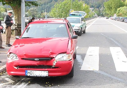 Doppelter Totalschaden durch Unachtsamkeit (Foto:privat)(hr) Leicht verletzt wurde eine 52-jährige Autofahrerin heute Nachmittag bei einem Auffahrunfall auf der B 37 in Eberbach. Zusammen mit ihrem Ehemann hatte die Frau aus dem Hohenlohekreis an einem Fußgängerüberweg angehalten, als ein 70-jähriger Autofahrer aus dem Rhein-Neckar-Kreis von hinten auf den VW Golf prallte. Ursache war vermutlich Unachtsamkeit und ungenügender Sicherheitsabstand. An beiden Autos entstand Totalschaden.