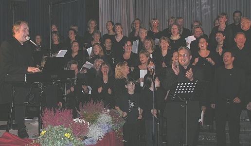 Musikalische Bälle zugeworfen Zum Klatschen und Mitsingen animiert, beim Abschlusskonzert des Gospelworkshops unter der Leitung von Helmut Jost (l.).(Foto:privat)