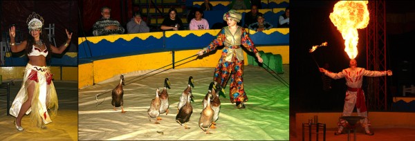 Circus Romanza, der Circus zur Faszination des Staunens, feiert nächstes Jahr sein zehnjähriges Firmenjubiläum. Gegründet von Rosita und Joachim Sperlich hat sich der Circus der Artistik verschrieben. In 120 Minuten präsentieren die beiden charmanten Akteure und ihre Artisten, bei denen natürlich auch ein Clown nicht fehlen darf, allerlei spektakuläre Elemente des traditionellen und modernen Circus, Comedy und modernste Ton- und Lichteffekte. Orientalischer Bauchtanz, Feuerschlucken, Handstand auf einer Stuhlpyramide in acht Metern Höhe und die in Deutschland einmalige Dressur mit 29 indischen Laufenten sind nur einige der Höhepunkte des Programms. Der achtjährige Sohn Rene des Direktorenehepaares hat es mit Liebe und Geduld geschafft, eine wunderschöne Dressur der indischen Laufenten zu präsentieren. Sein größtes Hobby sind die Tiere. Vor Schulbeginn schaut er stets bei seinen Lieblingen vorbei und kümmert sich auch nach der Schule eifrig um sie. Auch bei den Clowns sprang der Funke sofort auf das Publikum über.