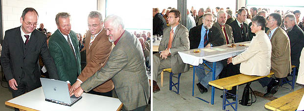 Zur Inbetriebnahme konnte Bürgermeister Schölch im Bauhof der Gemeinde in Strümpfelbrunn viele Gäste begrüßen. Darunter waren auch die Landtagsabgeordneten Peter Hauck und Gerd Teßmer, die Ehrenbürger Gerhard Hauck und Gerd Mosca, Jürgen Gomell vom Landratsamt sowie Prof. Dr. Hans Mehlhorn, Vorstandsvorsitzender der Bodensee-Wasserversorgung.