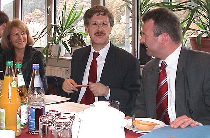 Gute Förderaussichten für Hochwasserschutz im Holdergrund Staatssekretär Dieter Hillebrand (Mitte) mit der Landtagsabgeordneten Elke Brunnemer und Bürgermeister Bernhard Martin. (Foto:C.Richter)(cr) Auf Einladung der Landtagsabgeordneten Elke Brunnemer war heute Staatssekretär Dieter Hillebrand vom Umwelt- und Verkehrsministerium zu Gast in Eberbach. In der städtischen Kläranlage begrüßte Bürgermeister Bernhard Martin die Anwesenden, darunter auch den Schönbrunner Bürgermeister Roland Schilling sowie die Fraktionsvorsitzenden Dr. Gerhard Brunn (Freie Wähler), Bruno Schmitt (SPD) und Marcus Deschner (CDU). Ursula Lemberger und Manfred Janner vom Stadtbauamt sowie Peter Koch (Kämmerei) legten die Situation beim Umbau der Kläranlage dar und berichteten über die weiteren Planungen. Ebenso wurden die Anwesenden über das Thema Holderbach-Hochwasserschutz informiert. Wichtig war für die städtischen Mitarbeiter die Aussage von Dieter Hillebrand, dass die Stadt eine Förderung von 70 Prozent der geschätzten 528.000 Euro förderfähigen Kosten für die Baumaßnahme Hochwasserrückhaltung Holdergrund erhalten könne. Desweiteren konnte der Staatssekretär einen Zuschuss von 30 Prozent für den 3. Bauabschnitt der Kläranlage in Aussicht stellen. Die Kosten dafür belaufen sich auf 3 Millionen Euro. Die Entscheidung über diese Förderung fällt laut Hillebrand allerdings erst am Donnerstag dieser Woche.