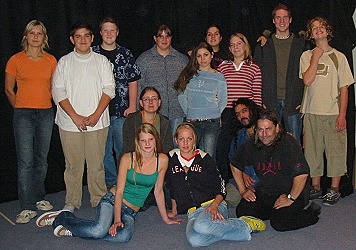 Theaterprojekt Sucht die Sucht bei den Schultheatertagen in Heidelberg (Foto:privat)(bro) (uk) Im April startete das Suchtpräventionsprojekt "Sucht die Sucht" an der Hauptschule Eberbach. Los ging es mit einem gegenseitigen Beschnuppern der Schüler, der Theaterleute vom Fex-Theater und der Projektleiterin Nicole Strämke. Innerhalb dieses Projekts bekamen die Schüler die Gelegenheit, verschiedene Workshops im Theaterbereich zu besuchen, z.B. Schattentheater, Videoprojektionen, Improvisationstheater, Schauspieltraining. Für die Schüler bedeutete dies 16 Treffen mit ca. 75 Stunden Theaterarbeit und zwar ausschließlich in ihrer Freizeit. Dabei entstand in einer "Suchbewegung" eine Bildertheatercollage aus einer Mischung von Schauspiel und Schattentheater. Das Thema Sucht wurde aber auch in den Schulalltag getragen, in dem die Teilnehmer die Möglichkeit hatten, sich mit Unterstützung der Projektleiterin über Drogenkonsum – Sucht zu informieren und auseinander zu setzen. Die Eigenproduktion der Schüler wird mit Mitteln des visuellen Theaters auf die Bühne gebracht. Die Bildcollagen bewegen sich zwischen Sehnsucht und Gewalt. Verbunden werden die Bilder von einem Mädchen mit einem Koffer. Sie begibt sich gemeinsam mit den Zuschauer auf die Reise, die von Techno-Beats bis klassischen Klängen begleitet wird. Special Guests sind u.a. Eminem, David Beckham, Oliver Kahn und andere Süchtige….