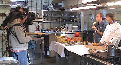 Eberbacher Apfeltag im Fernsehen (Foto:C.Richter)(hr) Am morgigen Sonntag, 31. Oktober, sendet das SWR-Fernsehen in der Reihe "Treffpunkt" um 18.45 Uhr einen Beitrag über den Eberbacher Apfeltag. Ein Aufnahmeteam war am Apfeltag-Wochenende in Eberbach unterwegs gewesen und hatte unter anderem im Café Viktoria und im Hotel Krone-Post gedreht (unser Bild). Dort kredenzte Küchenchef Uwe Jung überbackene Kartoffelpuffer mit Apfel und Kürbis.