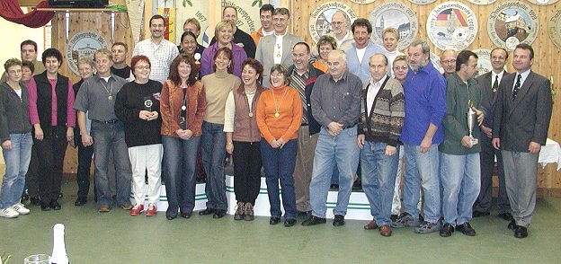 69 Mannschaften aus Eberbach und Umgebung beim SSV 1487 Die Siegerinnen und Sieger des 31. Verienspokalschiessens beim SSV 1487 Eberbach mit Oberschützenmeister Martin Hildenbrand (2.v.re.) und Bürgermeister Bernhard Martin (re.) (Foto:Claussen)(jc) Am vergangenen Freitag fand im Schützenhaus die Siegerehrung des 31. Vereinspokalschiessens des SSV 1487 Eberbach statt. Mit 69 teilnehmenden Vereinsmannschaften verfehlte man die Rekordteilnahme vom vergangenen Jahr nur um ein Team. Insgesamt kamen 371 Teilnehmerinnen und Teilnehmer an den Schiessstand im Schützenhaus. Geschossen wurde wieder auf die von Schiessleiter Friedrich Oeß entworfene "Glücks- und Könnensscheibe" die Glück und Können des Schützen gleichermaßen Rechnung trägt. Die Siegerehrung wurde von Oeß, Oberschützenmeister Martin Hildenbrand und Bürgermeister Bernhard Martin durchgeführt, der in einem Grußwort die alljährlich perfekte Organisation lobte. Es sei die einzige Veranstaltung dieser Art, die so viele Vereine aus Eberbach und Umgebung zusammenbringe.