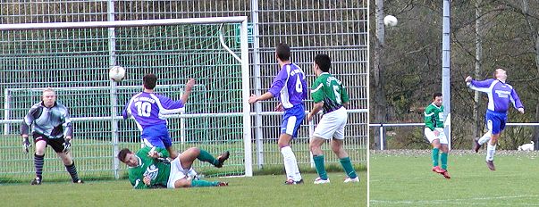 VfB Eberbach dem Kopfballspiel Wiesenbachs nicht gewachsen (Fotos:Claussen)(jc) (josch) Großes Manko im Spiel des VfB Eberbach war am heutigen Nachmittag das Verhalten gegenüber dem gegnerischen Kopfballspiel. Drei von fünf Treffern der SG Wiesenbach resultierten eben aus solchen Situationen und jedes Mal sah der VfB nicht gut aus. Das Spiel nahm den erwarteten Verlauf. 10. Minute, 1:0 für Wiesenbach, Torschütze Hussein Ibrahim. Aber der heimische VfB war zur Stelle. 19. Minute 1:1 durch Alexander Huck. Danach wieder Wiesenbach mit Hussein Ibrahim zum 1:2 (31.) Da begann das Spiel von vorne. Auf VfB- Seite traf wieder Huck zum 2:2 (32.). Für die Einheimischen kam es noch besser, denn Gregor Schlachter traf in der 39. Minute durch ein sagenhaftes Tor gar zum 3:2.