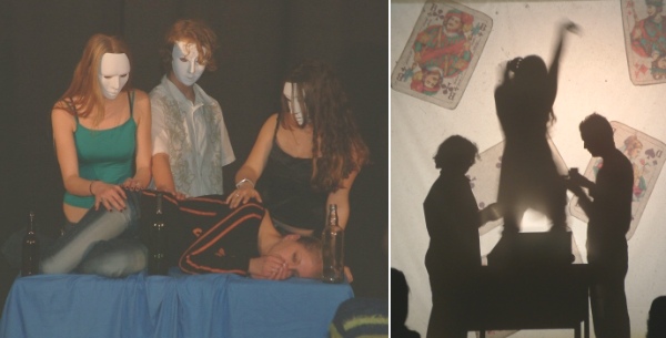 Bereits im April startete das Suchtpräventionsprojekt "Sucht die Sucht" an der Eberbacher Hauptschule betreut von Lehrerin Nicole Strämke als Projektleiterin in Kooperation mit dem FEX-Theater e.V. aus Eberbach. Nach gegenseitigem Kennenlernen der Schüler, der Theaterleute und Projektleiterin Nicole Strämke hatten die Schüler Gelegenheit an verschiedenen Theater-Workshops teilzunehmen. Sie befassten sich mit Schattentheater, Videoprojektionen, Schauspieltraining und Improvisationstheater. Dabei entwickelten die Schüler in ca. 75 Stunden ausschließlich in ihrer Freizeit vollkommen selbstständig die Bildertheatercollage wie Martin Fuchs vom Fex-Theater erklärte. Die Fex-Theater Leute halfen lediglich den Szenen eine "gewisse Bühnenreife" zu geben und bei der Technik.