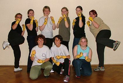 BAE -TAE BO- Abteilung in Ulm - stolze elf Prüflinge haben bestanden (v.l.)oben: Nina Pietsch, Caroline Stumpf, Carina Kühner, Carolin Lenz, Sarah-Jeanny Friehs, Stefanie Haag; unten: Daniela Heiß, Beate Mechler und Sandra Hamm. Sonja Rupp und Nina Plewe fehlen (Foto:privat)(jc) (mf) Ein sehr hartes, aber auch erfolgreiches Wochenende hatten die elf TAE BO Damen des Budokai Asahi Eberbach e.V., die am 6. November mit ihrer Trainerin Marina Friehs das Herbst-Event in Ulm besuchten, bei dem sie drei Top Trainer kennen lernen durften. Nach einem langen Trainingstag, der viel Kraft, Ausdauer und Konzentration forderte, traten die Damen die Prüfung (Upgrated) für die "gelbe Bandage" an. Sie bezwangen ihren Willen und legten die Prüfung mit großem Erfolg ab. Nun sind sie ebenfalls, wie ihre Trainerin, bei der IFAA registriert und können in einem halben Jahr die nächste Prüfung antreten.