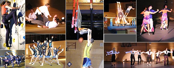 Video ansehen(jc) Am Abend fand, erstmals in der neuen Hohenstaufen-Sporthalle, vor über 500 Zuschauern die diesjährige Turn- und Sportschau des TV Eberbach statt. Unter dem Motto "Wir bewegen was" zeigten 200 Aktive aus den verschiedensten Abteilungen wieder einen Querschnitt der Vereinsarbeit. Passend zur neuen, modernen Halle gab es in diesem Jahr auch eine technische Neuerung. Auf einer Videoleinwand konnten die Zuschauer auf den Rängen die Darbietungen auch aus anderen Perspektiven erleben. Neu im Programm integriert wurde auch die in der Halle installierte Kletterwand. Das altbewährte Rezept sportlicher Unterhaltung wurde auch in der neuen Sportstätte nicht angetastet. Merklich war diesmal aber das Bestreben, Showelementen noch mehr Raum zu gewähren, ohne die sportliche Leistungsschau aus den Augen zu verlieren. So kam es beispielsweise beim Volleyballmatch "Monaco gegen Nigeria" zu ungewöhnlichen "Werbeeinlagen" zur Stimulierung der Lachmuskulatur. Moderiert wurde das gut zweieinhalbstündige Mammutprogramm von Toni Dausch.