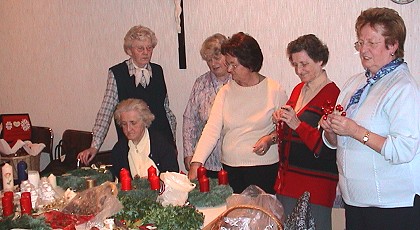 Die Ergebnisse werden heute und morgen im Katholischen Pfarrheim in der Feuergrabengasse zum Verkauf angeboten. Weihnachtsdecken, Engel, Strümpfe und Adventskränze gibt es ebenso wie norwegische Bauernstickereien und selbstgekochte Marmelade. Wie in den Jahren zuvor, wird auch diesmal wieder selbstgebackener Kuchen und Kaffee verkauft. Der Erlös kommt karitativen Zwecken zu Gute. Im letzten Jahr haben die elf Damen immerhin fast 2000 Euro "erwirtschaftet", die nach Abzug der Materialkosten an verschiedene Stellen gespendet wurden.