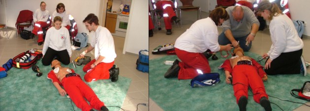 Frühdefibrillationstraining erfolgreich absolviert Die Mannschaft des DRK Schönbrunn nahm erfolgreich an einem Reanimationstraining mit Frühdefibrillation teil. (Fotos: privat)(ub) (DV) Die DRK Bereitschaft Schönbrunn nahm am 27.und 28. November an einem Reanimationstraining mit Frühdefibrillation teil. Unter der Leitung von Hans-Adam Wellenreuther von der Bereitschaft Waibstadt wurde im dortigen Vereinsheim intensiv geübt. An beiden Tagen wurde im Team die Herz– Lungen– Wiederbelebung, Verabreichung von Sauerstoff, Vorbereiten einer Intubation und natürlich die Bedienung eines Frühdefibrillationshalbautomaten(AED)sehr realistisch erlernt. Anhand verschiedener Fallbeispiele konnten die Helfer/innen ihr Wissen einsetzen und durch modernste Computertechnik in bestimmten Situationen reagieren. Verschiedene Krankheitsbilder lassen sich darstellen. Am Ende wurde von jedem Teilnehmer eine theoretische und praktische Prüfung erfolgreich absolviert. Nach diesem lehrreichen Kurs können die Helfer/innen in Zukunft mit mehr Ruhe und Routine an den Einsatzort gehen. Am Kurs nahmen Gabriela Nierychlo, Katharina Faron, Dieter Völker, Jürgen Heiß, Birgit Becker, Sabine Fink, Frank Strein, Holger Winterbauer, Sarah Haaß, Petra Kaufmann und Sabrina Gebel teil.
