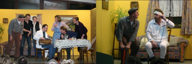 Lachsalven in Allemühl Die Theatergruppe des gemischten Chores "Frohsinn" Allemühl kam mit "Jetzt g´hersch der Katz, Ferdnand" beim Publikum bestens an. (Fotos: Böhm)(ub) Endlose Lachsalven erntete die Theatergruppe des gemischten Chores "Frohsinn Allemühl" 1900 e.V. unter der Regie von Ingrid Jakob. Seit nahezu 30 Jahren, exakt seit 1975, führen die Allemühler alljährlich Theaterstücke und Sketche auf. Mit dem Stück "Jetzt g´hersch der Katz, Ferdnand" trafen die Laiendarsteller vollends den Geschmack des jugendlichen Publikums. Die traditionelle Aufgabenverteilung zwischen Mann und Frau, also alles, was sich schon seit jahrtausenden bewährt hat, ist die Lebensphilosophie des Haustyrannen Ferdinand Zimmermann (Jürgen Konrad). Aus seiner Frauenfeindlichkeit macht er keinen Hehl "nimm dir liewwer eene, die net so schee is, awwer dafür uff´s Wort g´horcht" und hält Männer für Gottes beste Schöpfung. Eine Ausnahme ist lediglich Sohn Martin (Klaus Grüber), das "technische Wunderwerk, das ganz nach seiner Mutter geraten ist". Seit 30 Jahren hält seine Frau Annemarie (Annelie Adam) die Unterdrückung geduldig aus und schneidet ihm sogar die Zehennägel. Ferdnand´s rüder Umgangston ist auch innerhalb der Familie und des Ortes Allemühl bestens bekannt. Sein einzig ihm verbliebener Freund, Dorftrottel Heini Müller (Alexander Wäsch), geht bei dem bekennenden Macho in die Schule, um sich besser gegen seine resolute Frau Ilse durchsetzen zu können. Die Liebschaft von Sohn Martin mit Gerda Wolfs´s Tochter Evi (Kerstin Greif), ist Ferdnand ein Dorn im Auge. Evi hält Ferdnand für "ein lebendiges Geschwür". Dem widerspricht sogleich ihre Mutter Gerda (Martina Braner) "Net mol des, Geschwüre könne a mol gutardisch sei". So kommt es, wie es kommen muss. Irgendwann verbünden sich Evi und Gerda, die "Voodoo- Hex vom Oberdorf" mit der hilflosen und unterdrückten Annemarie. Die Rollen werden getauscht. Gerda zeigt nun dem Macho, wer zu Hause die Hosen anhat. Gerda glaubt, "Männer können niemals BSE kriege- wo nix is, kann a nix befalle werre". "Männer kann man auch nur mit Elektrorasenmäher in den Garten lassen, weil sie ohne Kabel nicht mehr ins Haus finden". Hausarztes Dr. Hartmut Tramer (Arne Kleinophorst) diagnostiziert schließlich bei Ferdnand sogar eine akute Hirnschrumpfung. Mit Hilfe von Dr. Tramer, der Familie und des ganzen Ortes wird der Frauenfeind, für den "Frauen nur vier Gehirnzellen haben- für jede Herdplatte eine", in einer Rosskur kuriert. "Wer einmal nagisch durch Allemühl rannte, zwei Treffer mit der Heimkehrgedächnisrolle erhielt und noch lebt, ist kuriert", meint die resolute Gerda.