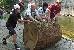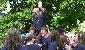Heute exakt um 17.07 Uhr lief das Zeitlimit von 72 Stunden ab, innerhalb dessen das Gelände der Steigeschule zu verschönern war. Die Aufgabe stand unter dem Motto "Grüne Schule", und so befassten sich viele Teilaufgaben mit dem Schulgarten, wo unter anderem eine Kräuterspirale aus Sandsteinen anzulegen und zu bepflanzen war. Außerdem musste das Gartenhaus angestrichen und sein Dach begrünt werden. Daneben galt es, das ehemalige Hausmeisterhäuschen im Schulhof auf Vordermann zu bringen (wir berichteten) und Sitzgelegenheiten aus Holz zu bauen. Insbesondere letztere Aufgabe erforderte ganze Männer, waren doch die dafür von der Stadtförsterei bereitgestellten Holzelemente bleischwer.