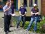 Sozialaktion beendet - Hauptschüler haben ganze Arbeit geleistet Gruppenbild zum Projektabschluss, unten v.l. das Fest im Schulgarten, die Urkundenüberreichung an Projektleiter Franz Josef Weber und das symbolische Durchtrennen des Bandes zum "neuen" Schulgelände durch Bürgermeister Bernhard Martin, Schulleiterin Nicole Strämke und Dekanatsjugendreferentin Rebecca Bohr (v.l.). (Fotos: Hubert Richter)Mehr Bilder: