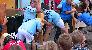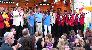 Eine bunte und abwechslungsreiche Show mit Spaß, Klamauk und Musik hatte das Organisationsteam unter Federführung von Karin Uhrig (Kulturamt) auf die Beine gestellt. Nach einer Verzögerung wegen eines kräftigen Regenschauers ging es kurz nach 18 Uhr auf der mobilen Showbühne, dem "Actiontruck", mit der Anmoderation durch RNF-Sprecherin Frauke Hess los. Einen fulminanten Auftritt hatte Bürgermeister Bernhard Martin, der auf einem Hundeschlitten vor die Bühne rollte, gezogen von den Lindacher Huskys. Den Weg durch die Zuschauermassen bereitet hatten ihm die Eberbacher Herolde, gefolgt vom Fanfarenzug. Die Singschule bot ein Medley aus dem Kindermusical "Leben im All". Für weitere Gesangseinlagen sorgten mehrere Eberbacher Chöre, die unter Leitung von Bezirkskantor Achim Plagge einen Kanon anstimmten, und Mitglieder des Gemeinderats, die in Abwandlung eines bekannten Volkslieds und passend maskiert "Der Kuckuck und der Eber" vortrugen. In Quizspielen waren neben dem Bürgermeister auch Triathlet Timo Bracht sowie die beiden Schulleiterinnen Regine Sattler-Streitberg und Stefanie Srivastava gefordert. Einen feucht-fröhlichen Wettstreit lieferten sich die drei Eberbacher Fußballvereine: Mit Schwämmen auf dem Kopf galt es, möglichst viel Wasser vom Brunnen in Eimer vor der Bühne zu transportieren. Der BUND ließ Kinder als Krötenpaare zwischen Bobbycars hindurch zum "Laichplatz" (ebenfalls der Brunnen) laufen. Die "Hallodries" der KG Kuckuck ließen die britische Palastwache und die Queen tanzen und durften eine übergroße "Viktoria-Torte" von der gleichnamigen Konditorei in Empfang nehmen. Tanz und Gymnastik verband die "Step Machine" des TV Eberbach in ihrem Auftritt, und für musikalische Unterhaltung zwischendurch und nach der Show sorgte die Eberbacher Band "61Inch". Die Stadtwette schaffte Eberbach ganz souverän. Es gelang nämlich, die Elferräte der drei örtlichen Karnevalvereine mitsamt Prinzenpaar in voller Montur auf die Bühne zu bringen. Alle zusammen sangen zum Abschluss das "Badener Lied".