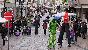 Mit Ostermarkt und Sonntagsshopping in die Bärlauchzeit Oben der Ostermarkt in der Stadthalle und Radkünstler Max Schrom in der Bahnhofstraße, unten Betrieb im Bärlauchzelt in der Friedrich-Ebert-Straße. Rechts: Ein Drache und sein Dompteur vom Stelzentheater Circolo sorgten in der Bahnhofstraße für Aufsehen. (Fotos: Hubert Richter)Mehr Bilder: