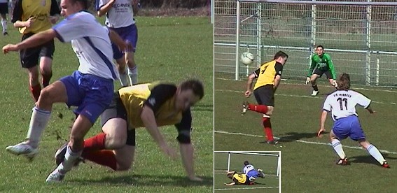 Die zweite Hälfte begann für den VfB nach Maß. Keine zwei Minuten waren gespielt und es stand 2:0 erneut durch Menges, der aus 18 Metern mit einem Volleyschuss in den Winkel traf. Nach einer guten Stunde musste Balukcic nach Gelb-Rot vom Platz. Die Gäste drängten nun auf den Anschluss und hatten auch in der 70. Minute Erfolg, als Röckl unbedrängt das 2:1 erzielte. Der VfB konnte nur noch wenige schnelle Konter durch Alexander Huck setzen. Bei einem dieser schnellen Läufe wurde der Stürmer im Strafraum von den Beinen geholt (kleines Bild), und Michael Stumpf verwandelte den fälligen Foulelfmeter in der 88. Minute zum 3:1-Endstand (siehe Videoclip).
