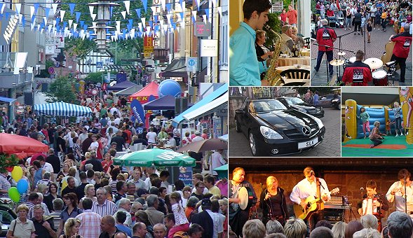 Zahlreiche Geschäfte beteiligten sich aktiv an dem Straßenfest und hatten bis 22 Uhr geöffnet, teils mit besonderen Aktionen. Autohäuser stellten Fahrzeuge aus, und für junge Gäste war ebenfalls einiges geboten, beispielsweise eine Hüpfburg, Kinderschminken oder Spielstationen der THW-Jugend.