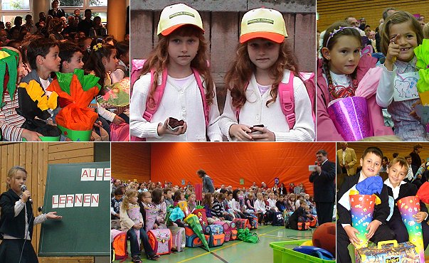 In der Grundschule Bildungswerkstatt Schönbrunn wurden gestern Vormittag rund 30 Kinder eingeschult. Ab kommender Woche werden die kleinen Erstklässler auf den Schulwegen unterwegs sein. Deshalb werden die Verkehrsteilnehmer wieder um erhöhte Vorsicht geboten. Damit die ABC-Schützen gut in den Straßen zu erkennen sind, wurden sie gestern in der Steige-Grundschule mit gelb-orangefarbenen Mützen ausgestattet (Bild oben), die vom EBERBACH-CHANNEL gespendet wurden. Die Schulanfänger der Dr.-Weiß-Grundschule sollen diese Mützen am kommenden Montag ebenfalls erhalten.