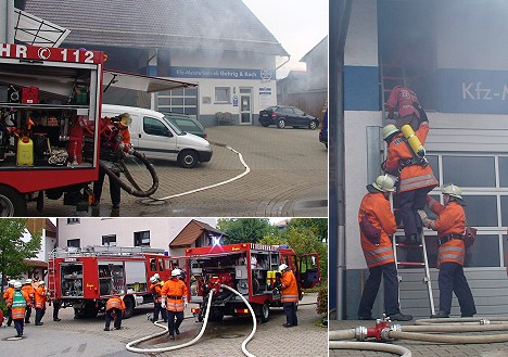 (hr)Zu einem Brand in einer Autowerkstatt in Moosbrunn wurden heute alle Ortsteilwehren der Feuerwehr Schönbrunn gerufen - allerdings "nur" zu Übungszwecken.