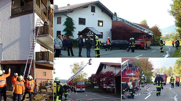 (hr) Menschenrettung und Brandbekämpfung waren die Aufgaben der Freiwilligen Feuerwehr Sensbachtal bei der heutigen Jahreshauptübung. In einer Scheune bei "Maiers Bauernstube" in Ober-Sensbach war ein Schwelbrand ausgebrochen, so die angenommene Übungslage. Durch geöffnete Fenster zum angrenzenden Wohnhaus wurde dieses verraucht, und es drohte ein Übergreifen des Feuers.