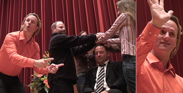 Die Rolle von Bewusstein und Unterbewusstsein demonstrierte der bundesweit gefragte Trainer am rechten Arm einer Zuschauerin. Diesen konnte er mühelos beugen, nachdem er ihr gesagt hatte, sie solle ihn mit aller Kraft gestreckt halten. Als er der Dame allerdings die Vorstellung soufflierte, ihr Arm sei eine Eisenstange, konnte Baschab das Gelenk seiner Probantin offenbar auch mit großer Kraftanstrengung nicht mehr bewegen. Weitere "Spiele" zeigten den Zuhörern, wie sie durch ihre Vorstellungskraft vermeintliche körperliche Grenzen überwinden oder ruhende Pendel in Schwingung versetzen und wieder stillstehen lassen können. Am beeindruckendsten war vielleicht das Experiment, bei dem sich die Gäste mit geschlossenen Augen vorstellen sollten, eine ihrer Hände beginne zu wachsen. Verblüfft stellten die meisten danach tatsächlich eine Größenveränderung ihrer Hand fest. Dass sich der Zustand des Unterbewusstseins auf den Körper und die Gesundheit auswirkt, ist seit langem in der Medizin bekannt. Diese Erkenntnis werde für Heilungsprozesse aber viel zu wenig eingesetzt, klagte Baschab und forderte ein Umdenken in der Gesundheitspolitik.