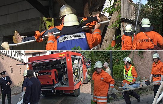Simulierter Scheunenbrand - Verletzte gerettet und Schlimmeres verhindert