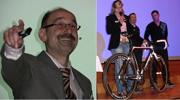 Die Radsportler Hanka Kupfernagel (Vizeweltmeisterin im Radcross), Michael Kochendörfer (Europameister im 24-Stunden-Mountainbikerennen) und Andreas Sieber (Deutscher Vizemeister im Downhill) talkten mir Rudolf Ziegler auf der Bühne über ihre Erfolge und erfüllten Autogrammwünsche (unser Bild rechts).
