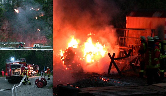 In dem Steinbruchgelände war auf einem Lagerplatz einer Dachdeckerfirma tagsüber Restholz verbrannt worden. Vermutlich durch Windböen wurde die unbeobachtete Feuerstelle erneut angefacht. Der Brand breitete sich rasch auf dem Gelände und im Buschwerk der angrenzenden Felswand aus.