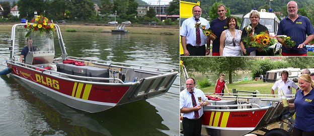 Nach der Sekttaufe durch Julia Neunkirchen, der neben Bürgermeister Bernhard Martin die Landtagsabgeordnete Elke Brunnemer, die DLRG-Landesverbandsvorsitzende Ingrid Lehr-Binder sowie Gerhard Frankhauser von der Sparkasse beiwohnten, unternahmen die Ehrengäste mit dem DLRG-Vorsitzenden Heinz Thöne eine "Jungfernfahrt" im neuen Boot. Anschließend waren auch die weiteren Festgäste zu Bootsfahrten auf dem Neckar eingeladen.