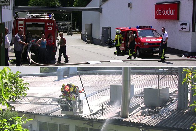 In der Firma, die Laminatplatten herstellt, wurde gegen 13 Uhr starke Rauchentwicklung festgestellt. Der Brandherd befand sich vermutlich im Dachbereich der Plattenvorbereitung für den Pressvorgang. Die Brandursache und die Schadenshöhe sind noch unklar.