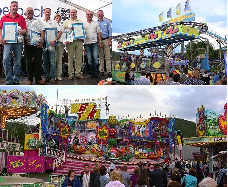 Bei der Festeröffnung wurden langjährige Marktbeschicker geehrt. Diesmal ist auch eine Achterbahn dabei (rechts oben). (Fotos: Claudia Richter)