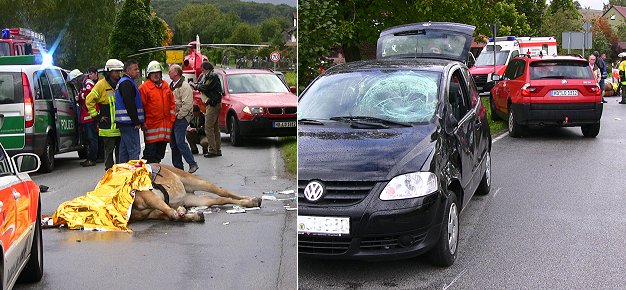 Bei dem Zusammenstoß wurde das Pferd getötet. Die Reiterin stürzte auf die Straße und wurde so schwer verletzt, dass sie nach notärztlicher Erstversorgung per Helikopter in eine Heidelberger Klinik geflogen werden musste. Die 25-jährige Autofahrerin wurde leicht verletzt.