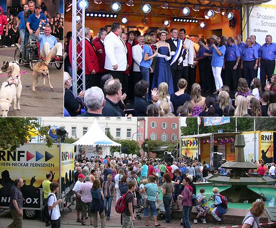 (hr)Ob Eberbach die sympathischste, originellste und interessanteste Stadt der Metropolregion ist, sollen demnächst die Zuschauer des Rhein-Neckar-Fernsehens entscheiden. Im Rahmen der RNF-Sommertour treten sieben Kommunen in jeweils einstündigen Fernsehsendungen gegeneinander an. Heute wurde auf dem Leopoldsplatz die Eberbacher Präsentation aufgezeichnet.