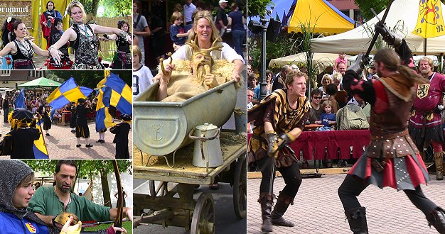 Rund 90 Schausteller sorgten rund um den Chateau-Landon-Platz für ein buntes mittelalterliches Treiben. In einem Handwerkerdorf konnte man historische Berufe bestaunen und Mitmachangebote nutzen, wie z.B. das Bogenschießen. Mit Musik, Tanz, Ritterkämpfen und Artistik wurde viel Unterhaltung geboten. Eröffnet wurde das Fest am Samstag um 11 Uhr auf dem Rathaus-Vorplatz, u.a. mit Beteiligung des Fanfarenzugs der Stadt Eberbach. Heute war Reporter Peter Krauch (Bild links unten bei der fachmännischen Einweisung ins Bogenschießen) mit dem Team des EBERBACH-CHANNEL/OMANO.de auf dem Ritterfest unterwegs (siehe Videobericht).