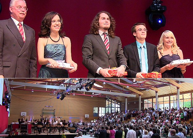 In den Gesamtnotendurchschnitt von 2,3 gehen immerhin 43 Abiturienten ein, die im Abschlusszeugnis eine "1" vor dem Komma haben. Vier von ihnen schafften sogar das Traumergebnis 1,0: Anna-Marie Vogl, Johannes Schreck, Daniel Flachs und Franziska Keursten. Den Scheffelpreis für das Fach Deutsch erhielt Jan Christoph Gelbhaar. Weitere Preisträger sind Anna-Marie Vogl und Sebastian Zielbauer (Stiftung Humanismus Heute), Sebastian Zielbauer (Franz Schnabel Gedächtnismedaille Geschichte), Simon Weißmann (Deutsche Physikalische Gesellschaft), Daniel Flachs und Franziska Keursten (Ferry-Porsche-Preis Mathematik und Physik), Britta Mayerhöfer und Maximilian Seidel (Verband der Chemischen Industrie), Simon Weißmann und Anna-Marie Vogl (Deutsche Mathematiker Vereinigung), Pierre Moreira und Lukas Münch (Sportkreis Heidelberg) sowie Timo Goes (Alfred-Maul-Medaille Sport). Anna-Marie Vogl war bereits vor einigen Tagen mit dem Werner-Stober-Preis für Musik ausgezeichnet worden (wir berichteten).
